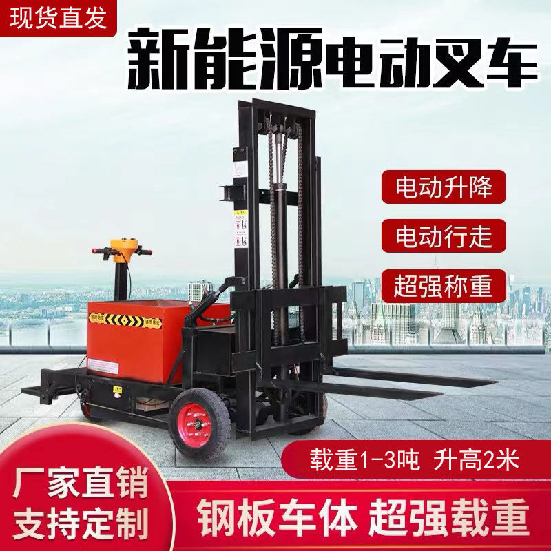 黄骅市小型电动叉车1吨站驾式2吨液压升高铲车全自动仓储堆高车